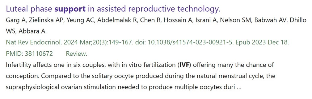 Artikel zur hormonellen Unterstützung der 2. Zyklushälfte bei IVF aus der Zeitschrift Nature Reviews Endocrinology (2024)